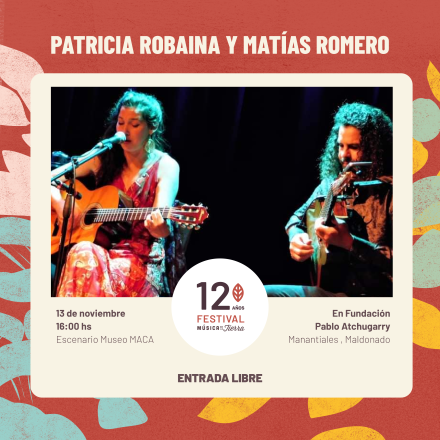 Nacida en Melo (Uruguay) en 1983, la infancia de Patricia Robaina estuvo marcada por la música y la poesía que recibía de la voz de su madre, la poeta Laura Martínez Coronel. Inició su camino en la música de forma autodidacta, comenzó a cantar en el Coro Departamental de Cerro Largo y a los 16 años pudo comprar su primera guitarra y comenzar a cantar acompañada por su instrumento. En 2007 se mudó a Maldonado y se integró a la murga “Cara a Cara” de la ciudad de San Carlos, ciudad donde llegó a dirigir la primera murga de mujeres del carnaval local. Apasionada por la poesía, estudió literatura, ha sido docente y tallerista en San Carlos, en Melo y en escuelas rurales. Trabajó muchos años en radio y poco a poco fueron apareciendo sus primeras canciones. En 2016 edita su primer disco llamado Canciones para responder lo que nadie pregunta, con músicas marcadas por la cercanía con la frontera y la cultura de Brasil, pero también con el tango y la milonga. En 2019 lanzó Cancionero de Juguete, un disco basado los poemas y canciones de Teresita Cazarré, maestra, poeta, titiritera y activista política de Melo, que murió muy joven. Ese mismo año Patricia Robaina comenzó a musicalizar textos de Virginia Brindis de Salas, primera poeta negra uruguaya en publicar un libro en América Latina. Investigó sobre los llamados Pregones de Marimorena que cuentan la historia y denuncian la situación de una mujer canillita, que deambulaba por las calles de Montevideo en 1940. Todo comenzó casi por casualidad, a partir del hallazgo de una foto. El proyecto Marimorena, musicalización e investigación de la obra de la primera poeta negra uruguaya, se plasmó en un disco editado a fines de 2021 que también incluye canciones compuestas en letra y música por la propia Patricia Robaina, con la complicidad del artíguense Ernesto Díaz y del gran guitarrista sanducero Matías Romero, como interpretación de los ritmos que Virginia Brindis de Salas puso en sus versos, con aires de tango y candombe que una vez la poeta declamó con su propia voz, denunciando las injusticias que sufría ella misma por ser negra. Marimorena es la base del espectáculo que Patricia y Matías presentarán en el festival Música de la Tierra.